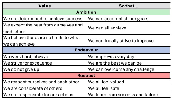 At Sir John Hunt, our ethos is for our students to strive ‘to greater heights’. This ethos is built on a core set of values, which underpins everything that we do: